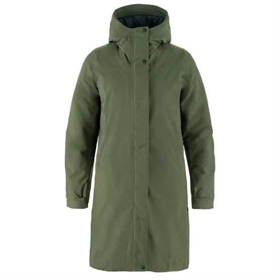 Parka lang damevinterjakke med vandtæt membran og isolerende fiberforing.