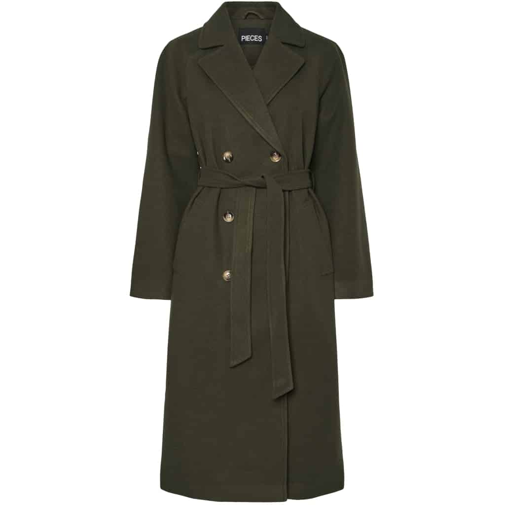 Lang frakke med dobbeltknappet lukning og bælte, som holder dig varm i den kolde tid. Denne frakke har omvendt halsudskæring og sidelommer.- Perfekt til lag-på-lag styling i kolde dage – Kombinér med striktrøjer og jeans for et afslappet look – Kan styles